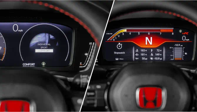 تتميز مقصورة القيادة في سيارة Type R الجديدة بتصميم خلاب يُـضفي المزيد من الإثارة على تجربة قيادة السيارة؛ ذلك أنها مُـزودة بمجموعة من المزايا والتفاصيل الانسيابية مع التركيز على الأداء العالي.