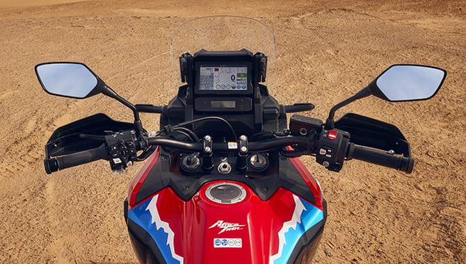 مجهزة بمنظومة إلكترونية فريدة وفائقة الجودة تتضمن تقنية تحكم عبر وحدة القياس بالقصور الذاتي ذات 6 محاور، وأربعة أوضاع قيادة افتراضية مع خيارين قابلين للتعديل مع نظام تحكم HSTC من 7 مستويات، ونظام تحكم بالحركة البهلوانية من 3 مستويات، ونظام مكابح "ABS" المانع للانزلاق عند المنعطفات وأضواء للمنعطفات. كما يتوفر كخيار مميز أيضاً نظام ناقل حركة ثنائي القابض بـ 6 سرعات. وتوفر الشاشة اللمسية الملونة عالية الدقة TFT  خصائص توصيل بالهاتف الذكي، لكي تكون جاهزاً لأي شيء، مهما كان طراز دراجة أفريكا توين الذي اخترته.