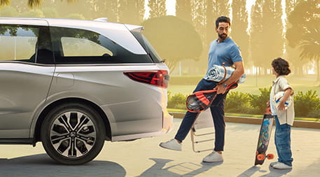 مع صف المقاعد الثاني المنزلق بشكل ساحر وصف المقاعد الثالث المنفصل بنسبة 60/40، يمكن التمتع بمساحة وافرة للوصول إلى صف المقاعد الثالث، بالإضافة إلى استيعاب 7–8 ركاب بكل راحة. يمكن أيضًا طي المقاعد لوضع حمولات مختلفة الأحجام