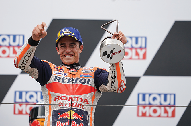 للمرة الحادية عشرة على التوالي في مسيرته ، إختطف مارك ماركيز العرض في Sachsenring وعاد مرة أخرى إلى منصة التتويج بعد 581 يومًا من فوزه الأخير.