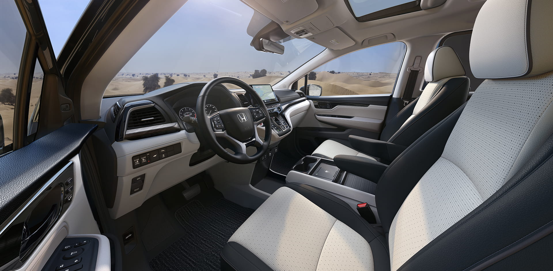 أدخلوا إلى عالم راحة البال تتميز سيارة هوندا أوديسي بتصميم داخلي متميز مع ميزات جديدة ومتطورة لضمان استمتاع الجميع بالرحلة.
