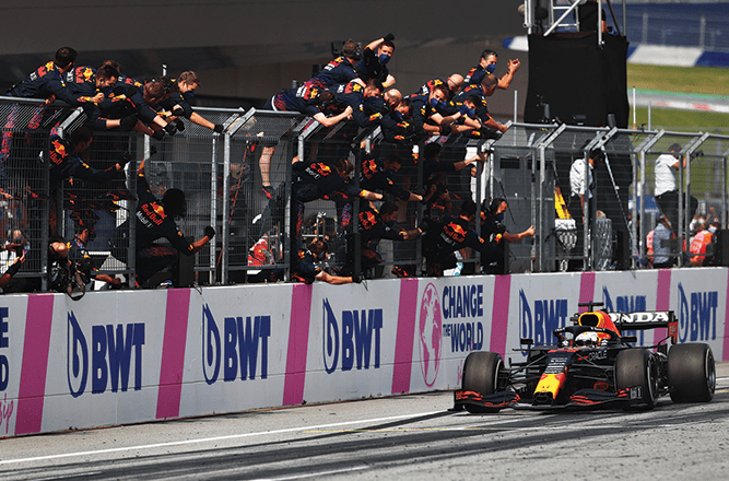 للمرة الأولى منذ عام 1988 ، تفوز سيارة تعمل بمحرك هوندا بخمسة سباقات متتالية بفضل الأداء المبدع لـ ماكس في النمسا.