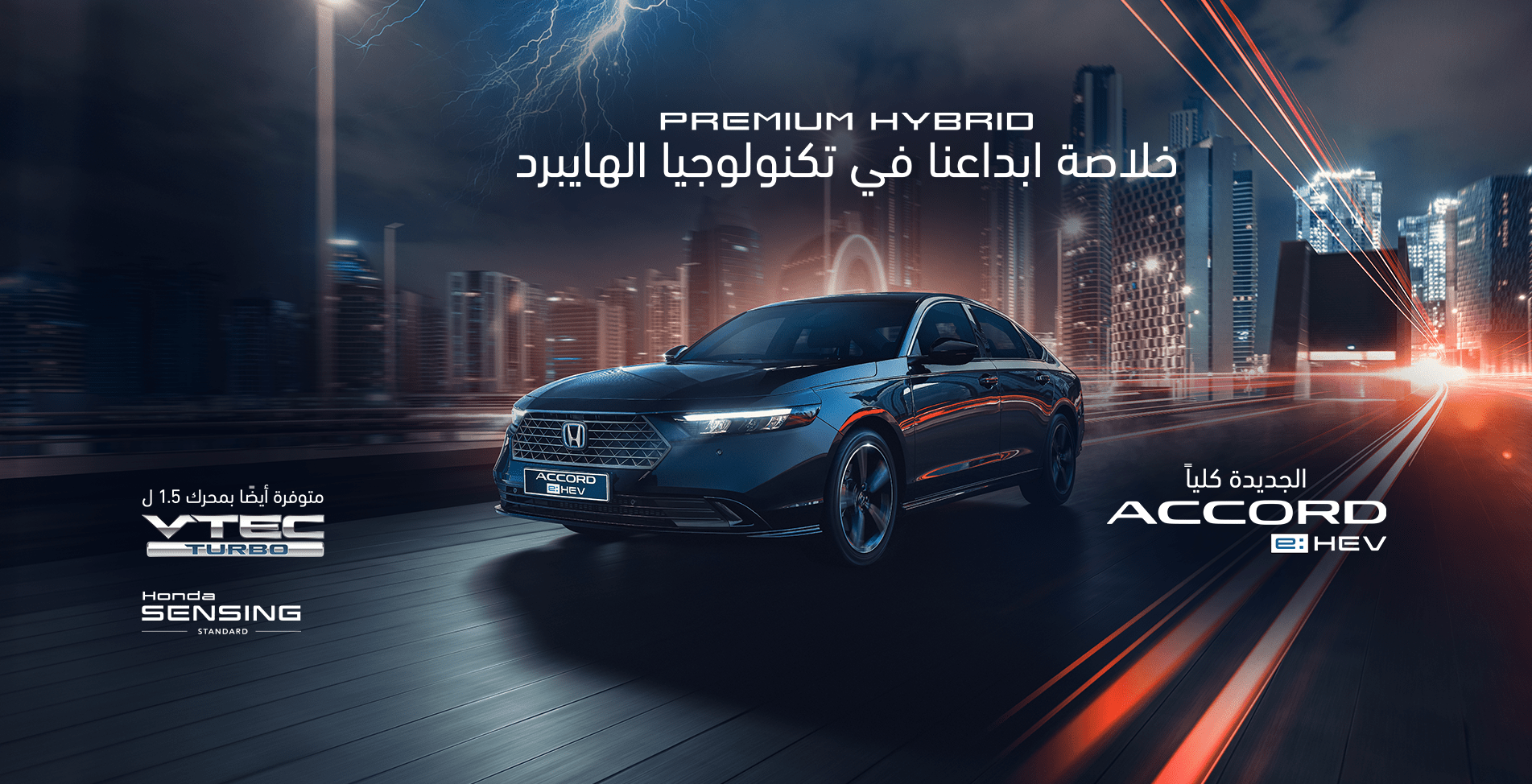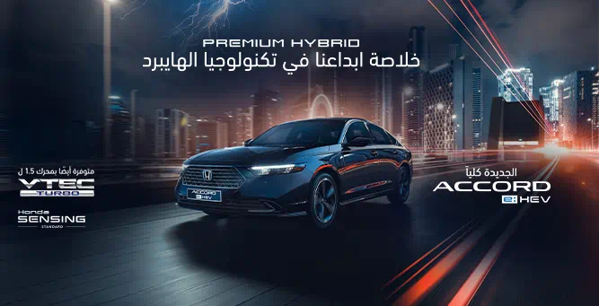 عند الحديث عن مستويات الراحة العالية والقيادة الديناميكية الانسيابية في عالم السيارات، فلا شك أن أول ما سيتبادر إلى الأذهان هي سيارة Accord. تتميز ال Accord الجديدة كليًّا بمظهر أنيق ورياضي ذي تصميم خارجي لافت للنظر وتصميم داخلي مُنظَّم يسهل استخدامه. كما أنها مزودة ، بنظام كهربائي هجين متطور يُوفر للمستخدم تجربة قيادة أكثر إثارة. وفيما يخص أنظمة السلامة ومساعدة السائق، فإن ال Accord مزودة بأحدث تقيات السلامة على الإطلاق، وهي من المميزات القياسية في جميع فئات السيارة.