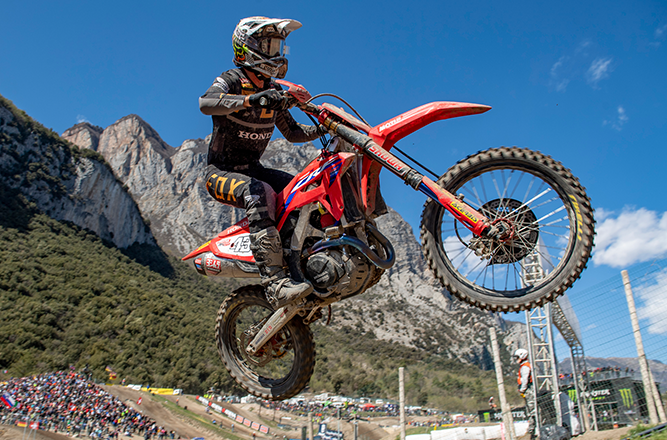 في فئة MXGP ، لم تكن مفاجئة أن يُـظهر تيم جاجسر من فريق HRC مرة أخرى أداءاً رائعًا في كلا السباقين. و من الرائع أيضًا أن نرى زميل جاجسر في الفريق ميتش ايفانز يظهر بشكل إيجابي بعد إصابة سيئة في المعصم في عام 2020 مما أجبره على عدم المشاركة في موسم 2021 بأكمله. ركب إيفانز دراجتة CRF450R و وصل إلى المركز الثالث في تصفيات يوم السبت ، لكنه كافح لإيجاد نفس الاداء يوم السباق ، ومع ذلك لا يزال يقدم أداءً مُحسنًا في هذه الحلبة شديدة الصعوبة.