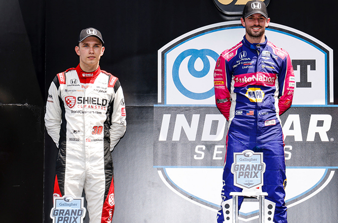 كريستيان لوندجارد (فريق رحال ليترمان لانيجان هوندا) أنهى في المركز الثاني ، أفضل نتيجة له في موسمه المبتدئ: "المركز الثاني! حقا كان يجب أن تكون النتيجة للمراكز الثلاثة الاولى ، لكن هذا شعور رائع. إنه لأمر رائع أن تفوز هنا ، و لأكون على منصة التتويج في أنديانابوليس! أعتقد أن الفريق يستحق كل هذا الإنجاز وهذا الأداء. أنا سعيد جدًا للفريق. بالنسبة لي ، كسائق ، بالطبع أنا سعيد بهذه المنصة ، لكنني أعتقد أن الفريق يستحق ذلك كثيرًا بعد كل عملهم الشاق. أنا سعيد للغاية ".