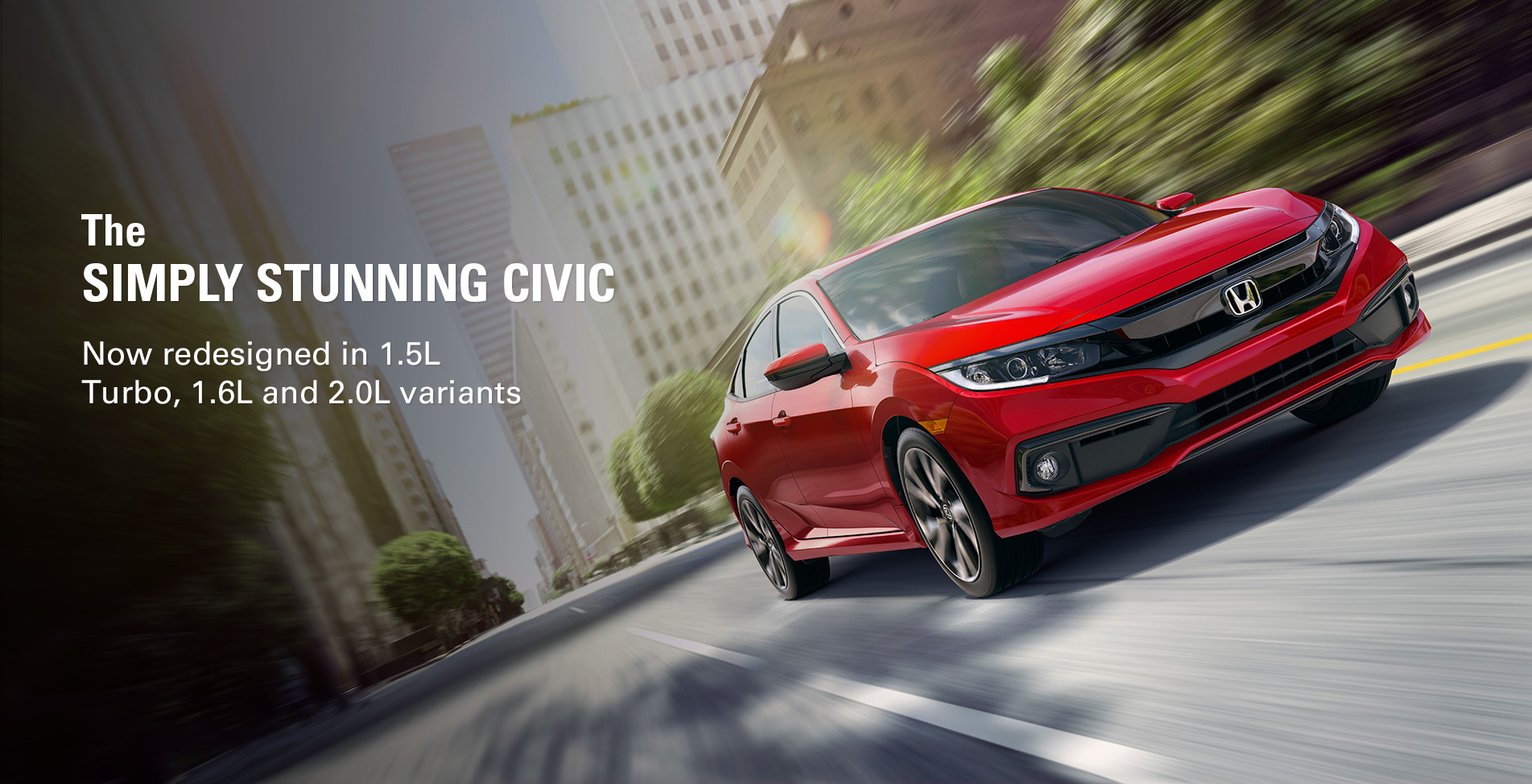 Forty years from the introduction of the first Honda Civic, the Civic sets an all-new standard in compact car style and performance. With sleek, sporty lines and a high power-to-weight ratio, it's a driver's delight. Your passengers will love it, too, because the spacious cabin is loaded with premium features for class-above comfort and convenience. The Civic — it's all new, and quite simply stunning.