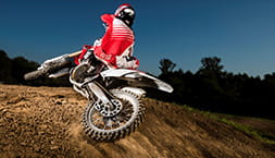The CRF450R brings you rock-solid reliability, with its ability to punch out of the gate first and build blistering lap times. A new front brake caliper also shaves more vital grams. Revised oil and spring/damping settings for the 49mm Showa Up Side Down fork enhance reaction, complemented by a ‘Super Finish’ process for the rear shock’s damper, plus revised Pro-Link ratio.