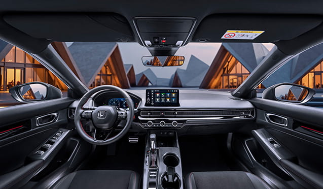Honda’s outstanding interior packaging results in ample head, leg, shoulder and hip room for all passengers. A feeling of spaciousness is immediately felt and shared by all Civic occupants, uncluttered design throughout its cabin.