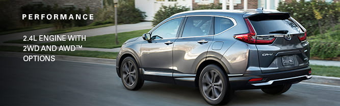 The CR-V features a updated dark tail lights and a sleek rear spoiler that help it stand out whether sitting still or taking off.