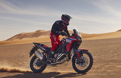 Complete with 6-axis IMU control, four default riding modes, two custom options plus 7-level HSTC, 3-level Wheelie Control and Cornering ABS, the electronic package is top draw. Our unique 6-speed DCT is an option, too. Add a full colour TFT touchscreen, with smartphone connectivity and, whichever Africa Twin you choose, you are ready. For anything.