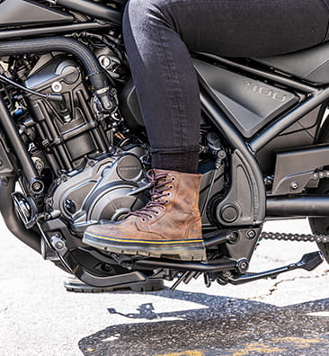 Also part of the Rebel family is the street custom chic of the CMX1100SE Rebel. It’s the first factory Honda to wear barend mirrors; these are a stylish, aluminium cut, antiglare design. Other factory-fit features include colour matched nose cowl, specially designed fork leg gaiters and short, sporty front mudguard. A diamond-stitch seat adds style and extra comfort while an anodised radiator cover marks out the SE difference.