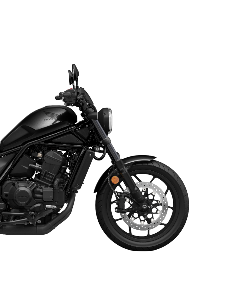 The CMX1100 Rebel combines a raw, ‘unprocessed’ look with modern craftsmanship, featuring a sculpted fuel tank, steel mudguards, a classic LED headlight, and a contemporary LED taillight. Its long, low profile offers a bold, authentic presence that stands out on the road.
