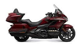 Stripping away the Gold Wing’s sleek bodywork reveals a fully honed chassis; a hugely strong, die-cast aluminium beam frame provides rock-solid stability, with steering precision and control from double wishbone front suspension. The single-sided rear Pro-Arm operates through Pro-Link, with electronically adjustable spring preload, and front and rear damping adjusts relative to riding mode selected. Dual Combined Braking System (D-CBS) distributes braking force evenly and with ABS control for confident, efficient stopping power. Hill Start Assist (HSA) makes getaways on an incline easy.