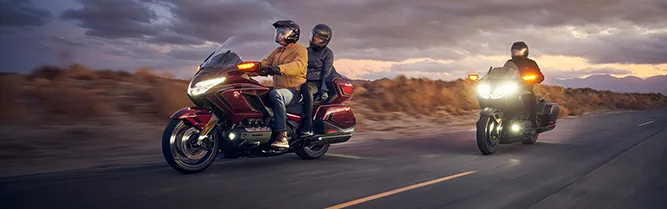 Stripping away the Gold Wing’s sleek bodywork reveals a fully honed chassis; a hugely strong, die-cast aluminium beam frame provides rock-solid stability, with steering precision and control from double wishbone front suspension. The single-sided rear Pro-Arm operates through Pro-Link, with electronically adjustable spring preload, and front and rear damping adjusts relative to riding mode selected. Dual Combined Braking System (D-CBS) distributes braking force evenly and with ABS control for confident, efficient stopping power. Hill Start Assist (HSA) makes getaways on an incline easy.