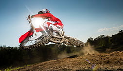 The CRF450R brings you rock-solid reliability, with its ability to punch out of the gate first and build blistering lap times. A new front brake caliper also shaves more vital grams. Revised oil and spring/damping settings for the 49mm Showa Up Side Down fork enhance reaction, complemented by a ‘Super Finish’ process for the rear shock’s damper, plus revised Pro-Link ratio.