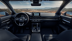 L'intérieur du CR-V e:HEV 2024 est sportif, moderne et spacieux, faisant progresser la nouvelle direction du design Honda, avec un savoir-faire raffiné, des matériaux et des touches haut de gamme. La toute nouvelle cabine est également plus silencieuse, plus spacieuse et dispose de plus de technologies, notamment des jauges numériques standard et des écrans tactiles plus grands.