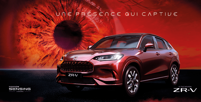 Voici le tout nouveau ZR-V. Un SUV énergique qui offre une expérience de conduite vivifiante grâce à un moteur 1.5 i-VTEC Turbo, à un châssis dynamique et à une suspension multibras. Cet élégant SUV de style coupé sport apporte de la verve, de la vitalité et de la polyvalence à chaque voyage.Avec une présence physique charismatique qui combine l'assurance d'un SUV et l'élégance d'un coupé, vous êtes sûr de faire tourner les têtes.
