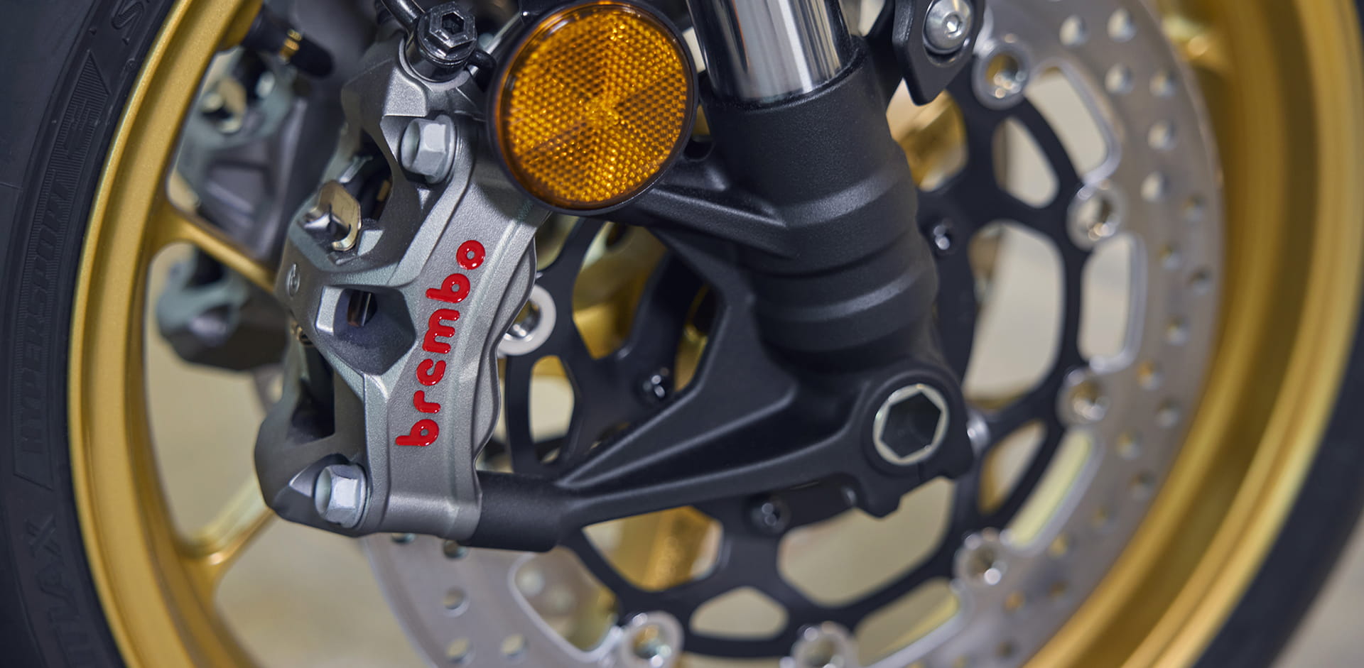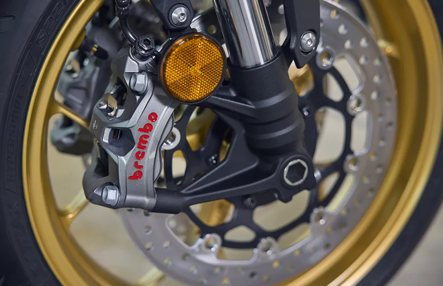 Jantes et fourche dorées – contraste saisissant, pure attitude.