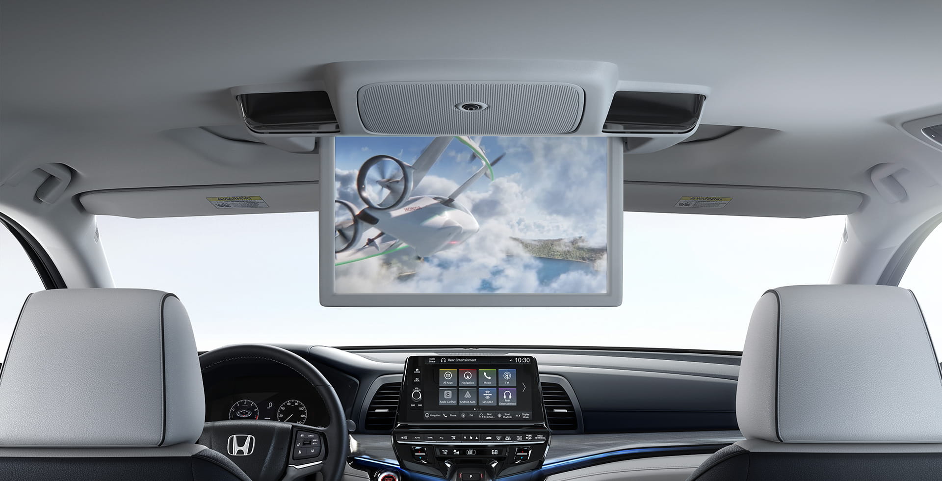 جديدٌ في هوندا أوديسي هو نظام الترفيه الخلفي بشاشة كبيرة قياس 12.8 بوصة، والذي يُعزز متعة المشاهدة، ويجعل المشاهدة أشبه بمنزلك. يأتي نظام الترفيه الخلفي مزودًا بخاصية جديدة كليًا تُعرف باسم "أحضر جهازك الخاص" (BYOD). تتيح لك هذه الخاصية بث برامجك المفضلة مباشرةً من أجهزتك المتصلة عبر البلوتوث أو منفذ HDMI الموجود في الكونسول الوسطي.