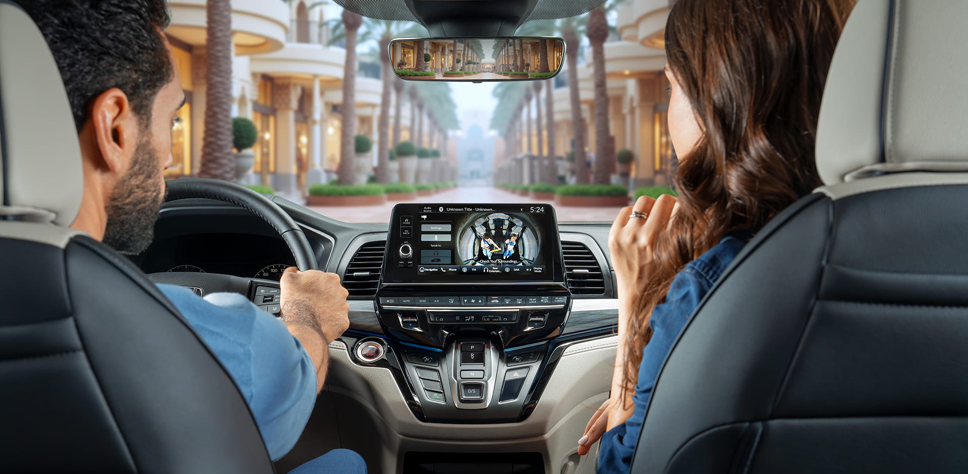 جديدٌ في هوندا أوديسي هو نظام الترفيه الخلفي بشاشة كبيرة قياس 12.8 بوصة، والذي يُعزز متعة المشاهدة، ويجعل المشاهدة أشبه بمنزلك. يأتي نظام الترفيه الخلفي مزودًا بخاصية جديدة كليًا تُعرف باسم "أحضر جهازك الخاص" (BYOD). تتيح لك هذه الخاصية بث برامجك المفضلة مباشرةً من أجهزتك المتصلة عبر البلوتوث أو منفذ HDMI الموجود في الكونسول الوسطي.