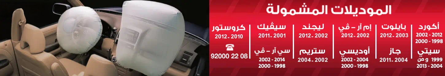 لعمليات الإستدعاء الأخرى، يُرجى الاتصال بمركز خدمة هوندا المعتمد.