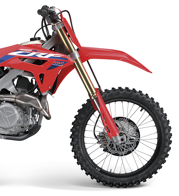 توفر لك درَّاجة (CRF450R) درجة متانة عالية مع قدرة على الانطلاق بسرعة من بوابة السباق لتحتل الصدارة وقطع مسافة السباق في وقت قياسي. كما يتميز مسند المكابح الأمامية بخفة وزنه. تعمل إعدادات المُخَمِّد/ الزنبرك والوقود المُعدَّلة للشوكة المُعلقة رأسًا على عقب من Showa 49 مليمتر على تعزز ردة الفعل ويساعدها في ذلك عملية الإنجاز المتناهي الدقة للمصد الخلفي بالإضافة إلى Pro-Link المُعدَّل.