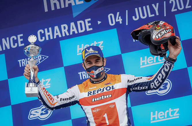 لقد حقق توني بو متسابق فريق ريبسول هوندا إنتصاراً رائعاً على حلبة شاريد الفرنسية في الجولة الثالثة من بطولة العالم TrialGP. و قد أنهى زميله في الفريق تاكاهيسا فوجينامي في المركز الرابع.