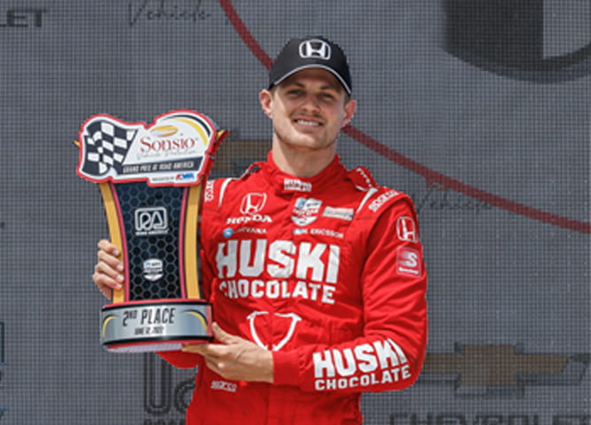 قاد ماركوس إريكسون الفائز بجائزة إنديانابوليس 500 الشهر الماضي الطريق لهوندا اليوم في سباق بطولة إندي كار - رود أمريكا بحصوله على المركز الثاني مرة أخرى في صدارة نقاط البطولة بعد ثمانية من أصل 17 سباقًا.