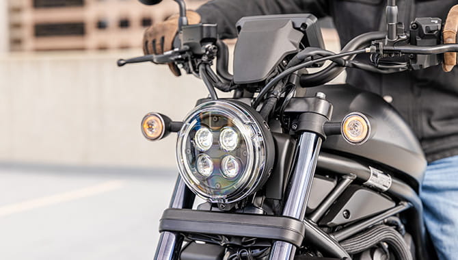 تجمع دراجة CMX1100 Rebel بين المظهر الخام والحرفية الحديثة، وتتميز بخزان وقود منحوت، وواقيات طين فولاذية، ومصباح أمامي LED كلاسيكي، ومصباح خلفي LED عصري. يمنحها تصميمها الطويل والمنخفض حضورًا جريئًا وأصيلًا يلفت الأنظار على الطريق.
