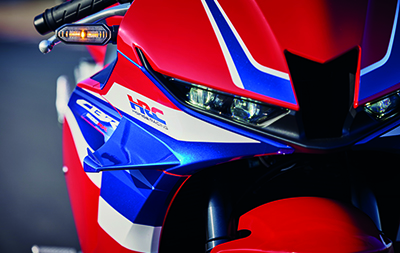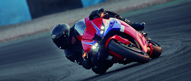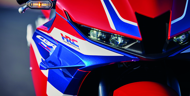 مستوحاة من دراجة CBR1000RR-R Fireblade وجذورها RC213V-S، تتميز CBR600RR بواجهة أمامية منحوتة بدقة لتقليل مقاومة الهواء، وجنيحات مدمجة لتوفير قوة ضغط ثابتة أثناء الانعطاف والتسارع.