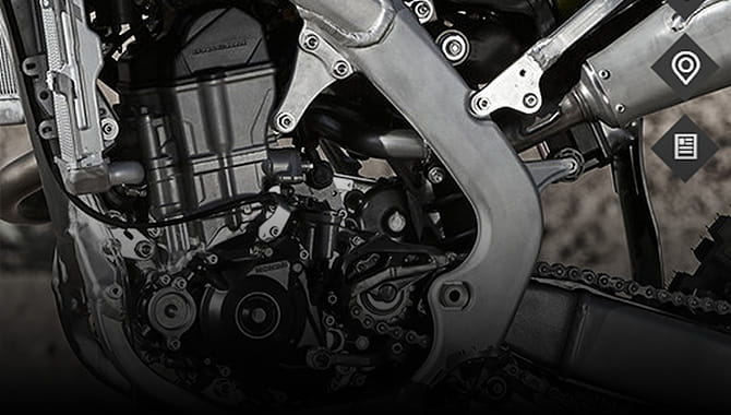 توفر لك درَّاجة (CRF450R) درجة متانة عالية مع قدرة على الانطلاق بسرعة من بوابة السباق لتحتل الصدارة وقطع مسافة السباق في وقت قياسي. كما يتميز مسند المكابح الأمامية بخفة وزنه. تعمل إعدادات المُخَمِّد/ الزنبرك والوقود المُعدَّلة للشوكة المُعلقة رأسًا على عقب من Showa 49 مليمتر على تعزز ردة الفعل ويساعدها في ذلك عملية الإنجاز المتناهي الدقة للمصد الخلفي بالإضافة إلى Pro-Link المُعدَّل.