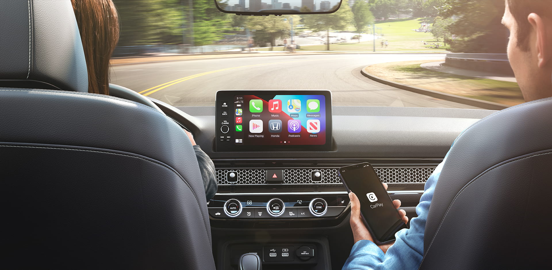 تتميز سيارة هوندا سيفيك الجديدة كُليًّا بمنافذ USB قياسية من أجل الشحن ومن أجل توصيل و استخدام الهواتف الذكية.
