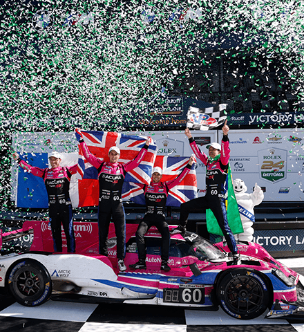 هيليو كاسترونيفيس # 60 ماير شانك ريسينغ أكيورا ARX-05 الفائز في رولكس 24 في دايتونا مع السائقين المشاركين توم بلومكفيست وأوليفر جارفيس وسيمون باجينود: "هذا أمر لا يصدق! لقد صنعنا التاريخ في دايتونا! دعونا نذهب لنحتفل ! أعطاني الفريق سيارة رائعة ، وكان لدي زملائي المذهلون:  توم و أوولي و سايمون والجميع في فريقنا والجهات الراعية و أكيورا و HPD. يا له من سباق عظيم. كان صعباً للغاية. كان صديقي ريكي [تايلور] في الخلف وأعرف نقاط قوته. كان لدي بعض الطاقات لاستخدامها في اللفات الأخيرة. لم أفكر مطلقًا في أنني سأتوج في دايتونا ، لكنني أدركت هذا الحلم اليوم ".