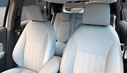 زوِّد المقعدان الأماميان بميزات تبعث على الراحة ويتلاشى معها أي شعور بالتعب والإجهاد، وهي بذلك توفر مستويات الراحة التي يمكن الحصول عليها من فئة سيارات الليموزين. إضافة إلى ذلك هنالك العديد من اللمسات المدروسة بعناية، مثل مسند الذراع في القسمين USB العريض المزود بمساحة للتخزين، ومنفذ الأمامي والخلفي، من أجل ضمان استمتاع كل الركاب بالرحلة.