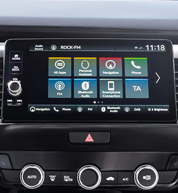 تتميز ال (Jazz) الجديدة من الداخل ببساطة اللمسات الجمالية التي تُضفي مظهرًا خلابًا، بالإضافة إلى ما تمنحه من راحة مذهلة لراكبيها، بما تحتويه من مواد ناعمة الملمس وشاشات واضحة ونقية. شاشة القيادة الرقمية مقاس 7 بوصات، وشاشة اللمس Honda CONNECT مقاس 9 بوصات تتُيحان لك رؤية المعلومات الضرورية بمنتهى السهولة والسرعة.