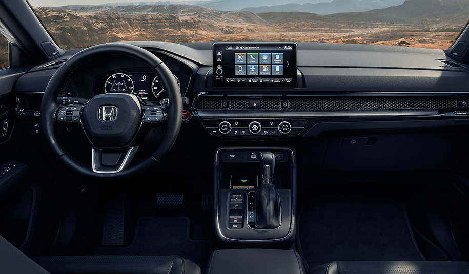 تضم CR-V 2024 مقصورة داخلية رياضية عصرية ورحبة، تدعم توجه هوندا الجديد في تعزيز التصميم مع حرفية راقية، مواد مميّزة ولمسات راقية. كذلك، جاءت المقصورة الجديدة كلياً أكثر هدوءاً ورحابة، ومجهّزة بالمزيد من التكنولوجيا، من بينها عدّادات رقمية قياسية وشاشات تعمل باللمس أكبر حجماً.