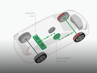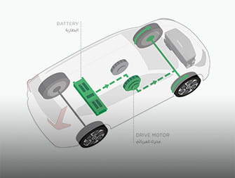 بكفاءته، وبين اثنين من المحركات الكهربائية وبطارية ليثيوم أيون .