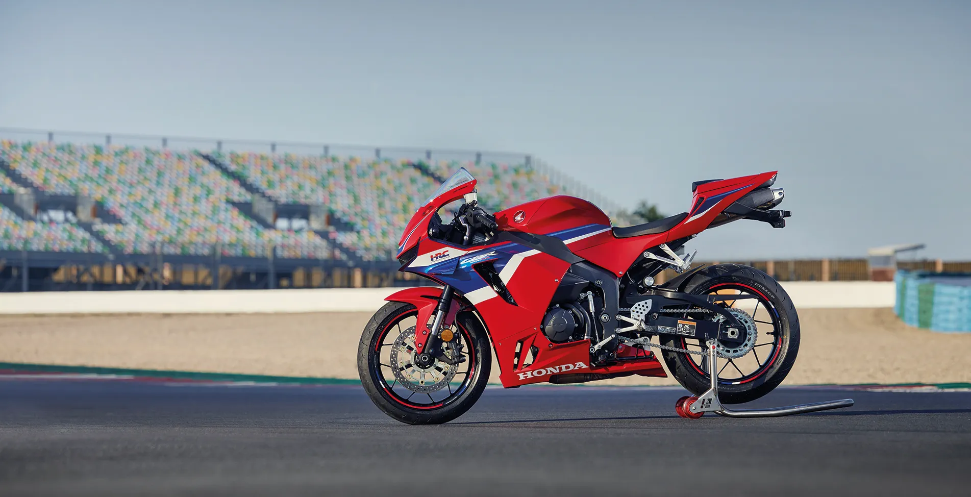 يُحسّن كاتم الصوت الأحادي المركزي العلوي من توزيع الوزن، بينما يُبرز طلاء HRC ثلاثي الألوان - الأحمر للشغف، والأزرق للتميز التقني، والأبيض للسباقات - أصالة هذه الدراجة.