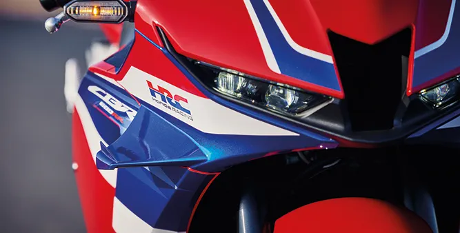 مستوحاة من دراجة CBR1000RR-R Fireblade وجذورها RC213V-S، تتميز CBR600RR بواجهة أمامية منحوتة بدقة لتقليل مقاومة الهواء، وجنيحات مدمجة لتوفير قوة ضغط ثابتة أثناء الانعطاف والتسارع.