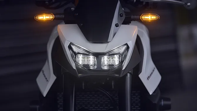 Its aggressive streetfighter stance and redesigned dual LED headlight demand attention.