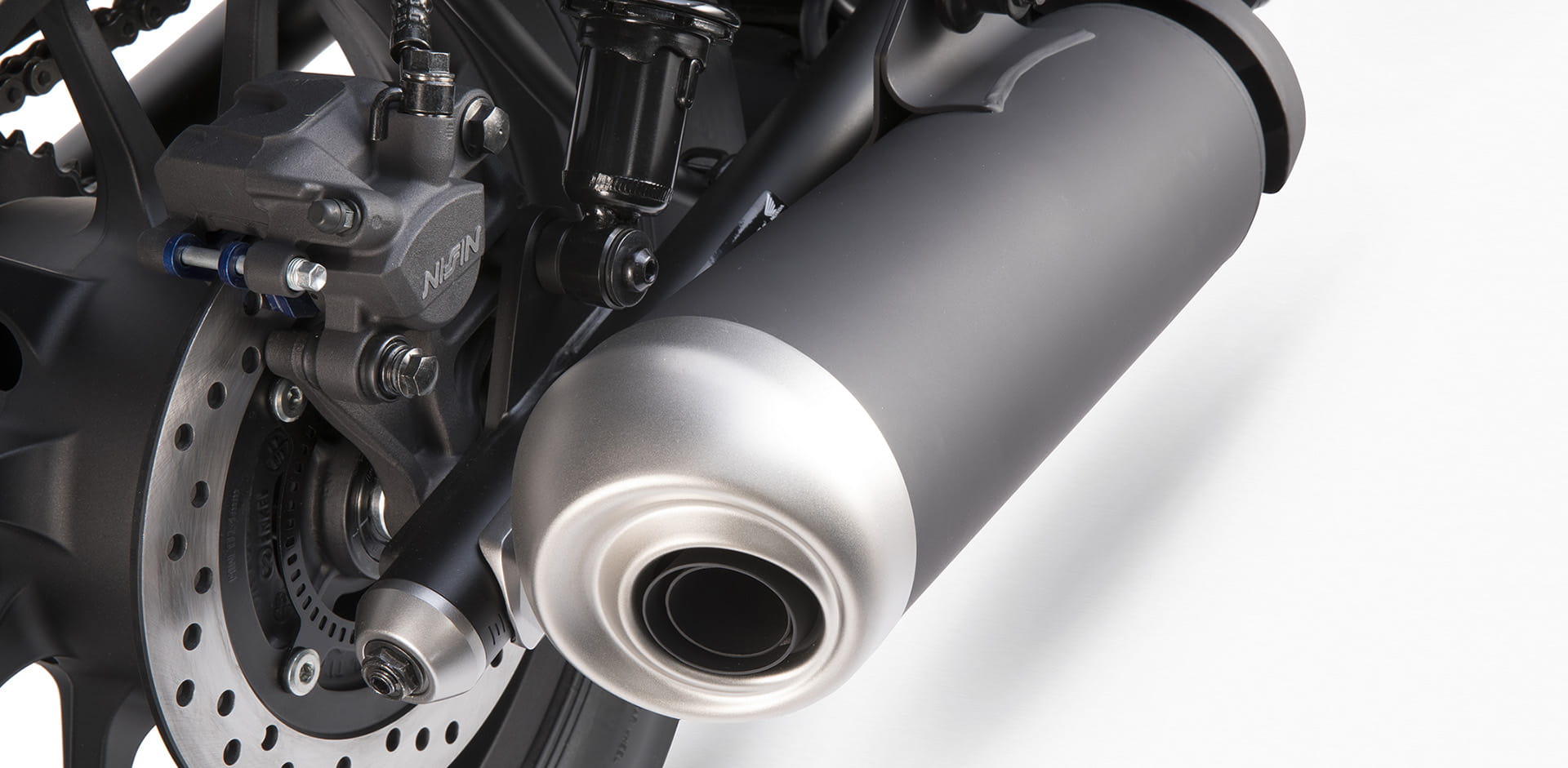 For a stripped-down look, the pillion footpegs and rear seat pad quickly unbolt. 41 mm telescopic front forks are matched to spring preload- adjustable, nitrogencharged shock absorbers, for a compliant and supple ride; both front and rear discs are controlled by two-channel ABS, for confident braking in all conditions.
