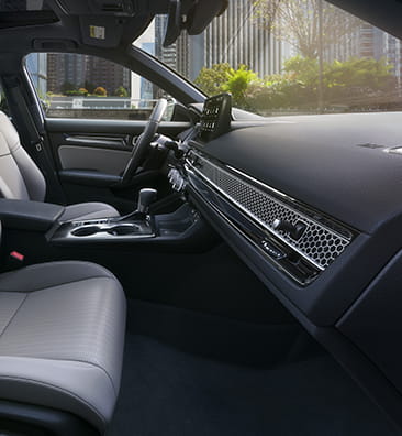 Honda’s outstanding interior packaging results in ample head, leg, shoulder and hip room for all passengers. A feeling of spaciousness is immediately felt and shared by all Civic occupants, uncluttered design throughout its cabin.