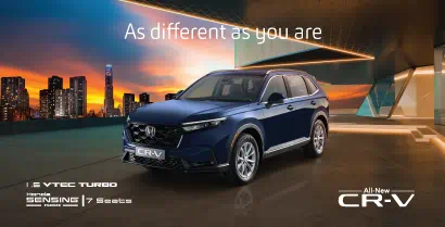 The All New CR-V, has been honed over 25 years and now in its 6th generation. CR-V raises the bar with its strong new looks and a more fun-to-drive personality and is perfect for daily life or weekend escapes. Further advancing the new Honda design direction with a low horizontal beltline and a powerful front end, the CR-V is longer and wider with a significantly broader stance. Versatility has increased vastly, by adding a 3rd row seat, enabling the CR-V to accommodate seven occupants.
