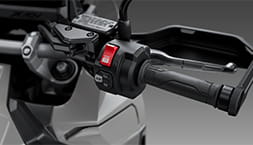 It enables operation of the motorcycle without the need for inserting a key into the ignition switch and improves security as the motorcycle cannot be started by forcing the ignition switch. It uses a 2m communication range to automatically unlock when moving close to the motorcycle with the Honda Smart Key in your possession, this enables switching on of the ignition and unlocking the seat and fuel cap.