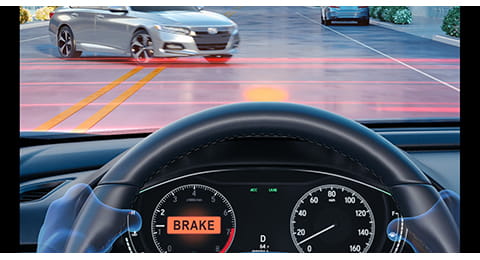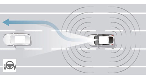 Using a camera and radar, this system monitors the distance between the vehicle and the one ahead of it ...