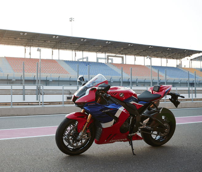 The bodywork outlines an aggressive, functional minimalism with sheer compactness, LED lighting, and the iconic tri-color paintwork – that pays homage to Honda’s racing history.