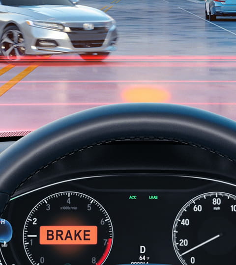 Using a camera and radar, this system monitors the distance between the vehicle and the one ahead of it ...