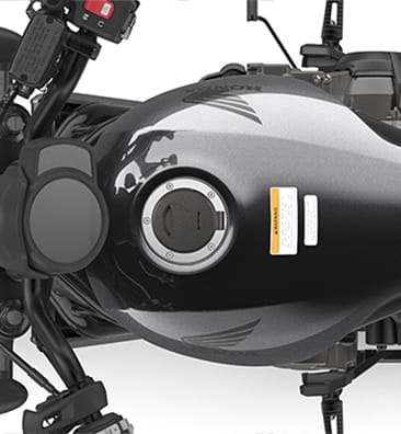 New small LED turn signals matching the Rebel’s styling are adopted. Round ring lights in the front function as a position light, leaving a strong “Rebel” impression as well as ensuring higher visibility.