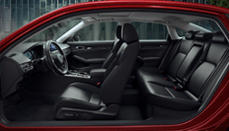Honda’s outstanding interior packaging results in ample head, leg, shoulder and hip room for all passengers. A feeling of spaciousness is immediately felt and shared by all Civic occupants, uncluttered design throughout its cabin.