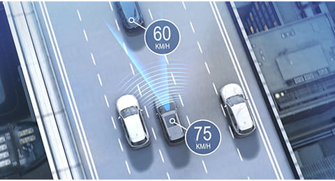 Using a camera and radar, this system monitors the distance between the vehicle and the one ahead of it ...
